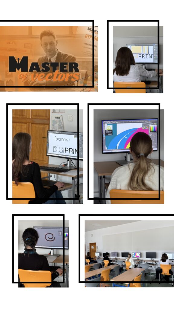Eliminacje do finału ogólnopolskiego konkursu graficznego “Master od Vectors” odbyły się 20 marca 2026. Do zmagań półfinałowych, które odbywają się w formie online, przystąpili dziś uczniowie z ponad 4O szkół z całej Polski. Z naszej szkoły o wejście do finału walczyły Nikola i Victoria. Gościliśmy dziś również dwie uczennice: Lilianę i Klaudię z Zespołu Szkół Technicznych Centrum Kształcenia Zawodowego w Rusocinie, które także brały udział w zmaganiach konkursowych.