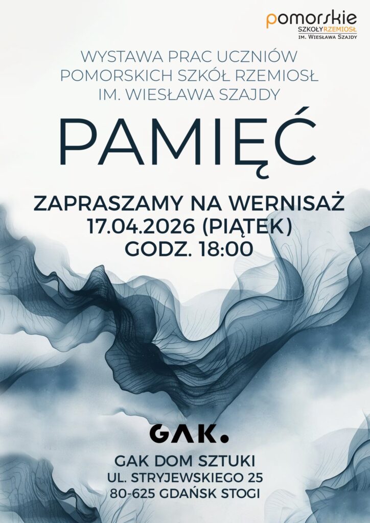 Zapraszamy na wyjątkowy wernisaż wystawy prac uczniów Pomorskich Szkół Rzemiosł im. Wiesława Szajdy. Ekspozycja zatytułowana „Pamięć” to artystyczne spojrzenie młodego pokolenia na przeszłość oraz jej wpływ na współczesność.